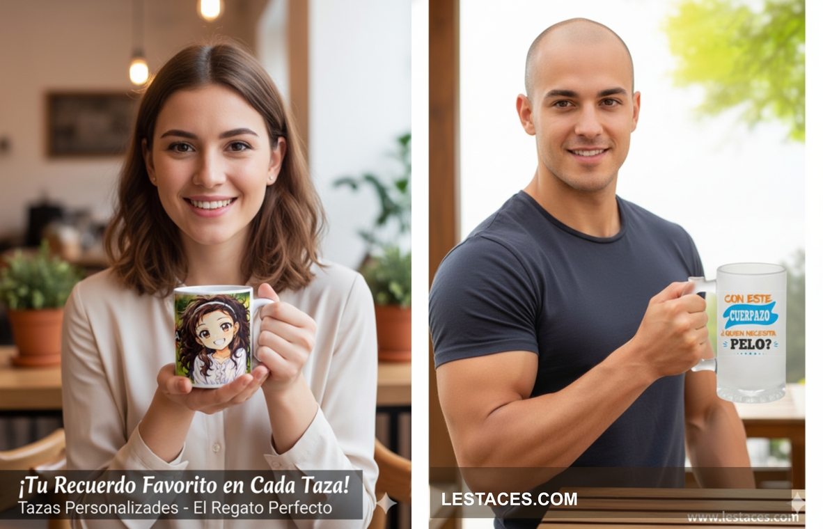 Tazas personalizadas de Lestaces son perfectas para comenzar el día con un toque personal o para regalar en ocasiones especiales. Escoge entre nuestras tazas de cerámica, térmicas o mágicas, y personalízalas con tus fotos, frases o diseños favoritos.
