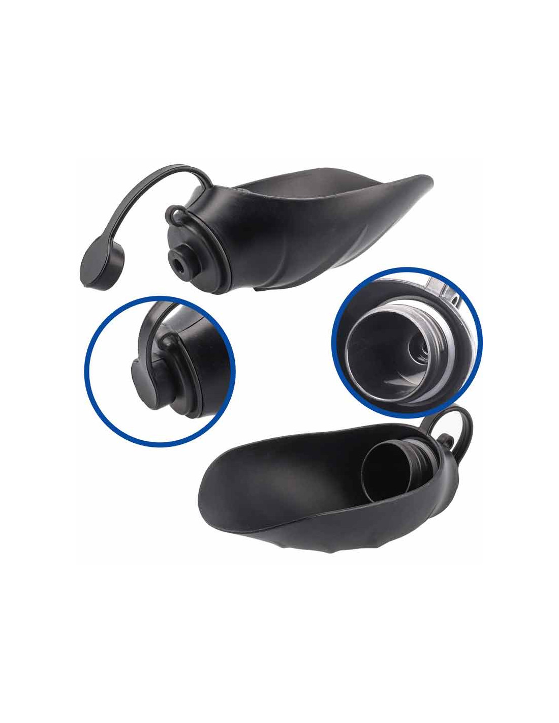 - Tapón y asa de plástico negro, y boquilla