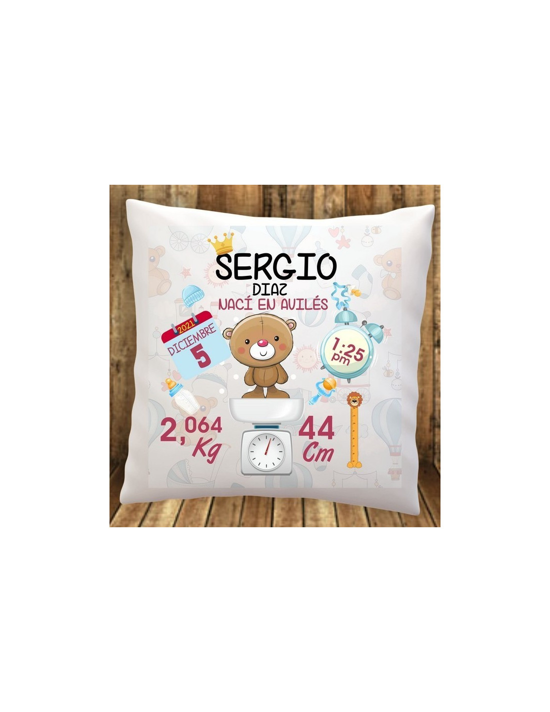 No olvide guardar su personalización para poder añadirla al carritoCojín regalo nacimiento