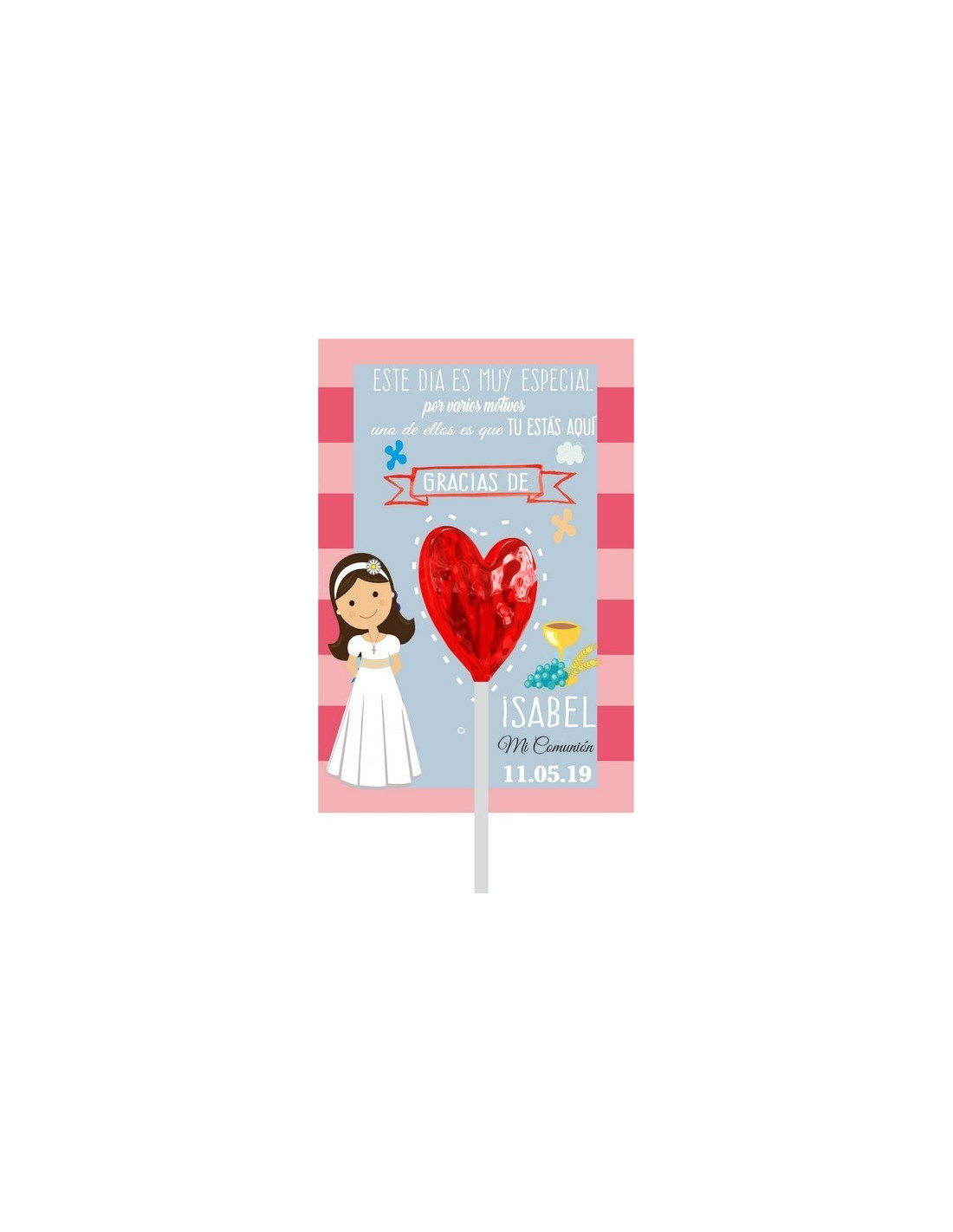 Tarjeta + piruleta gracias por venir a mi comunión