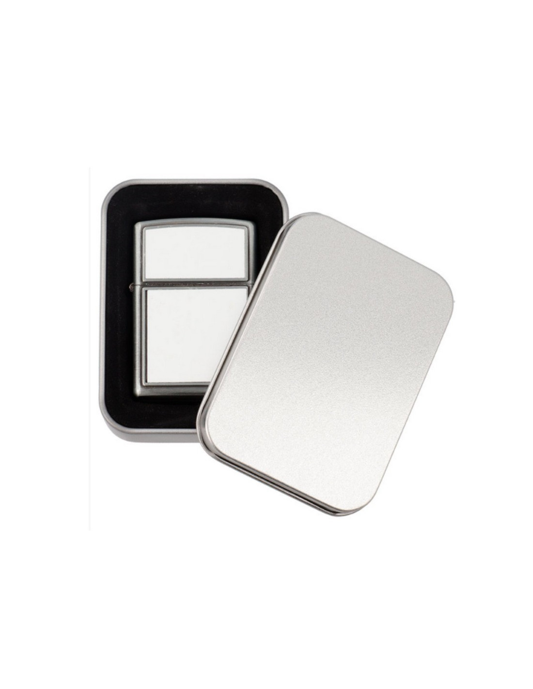 Encendedor plateado con 2 láminas de aluminio personalizables mediante la técnica de sublimación.