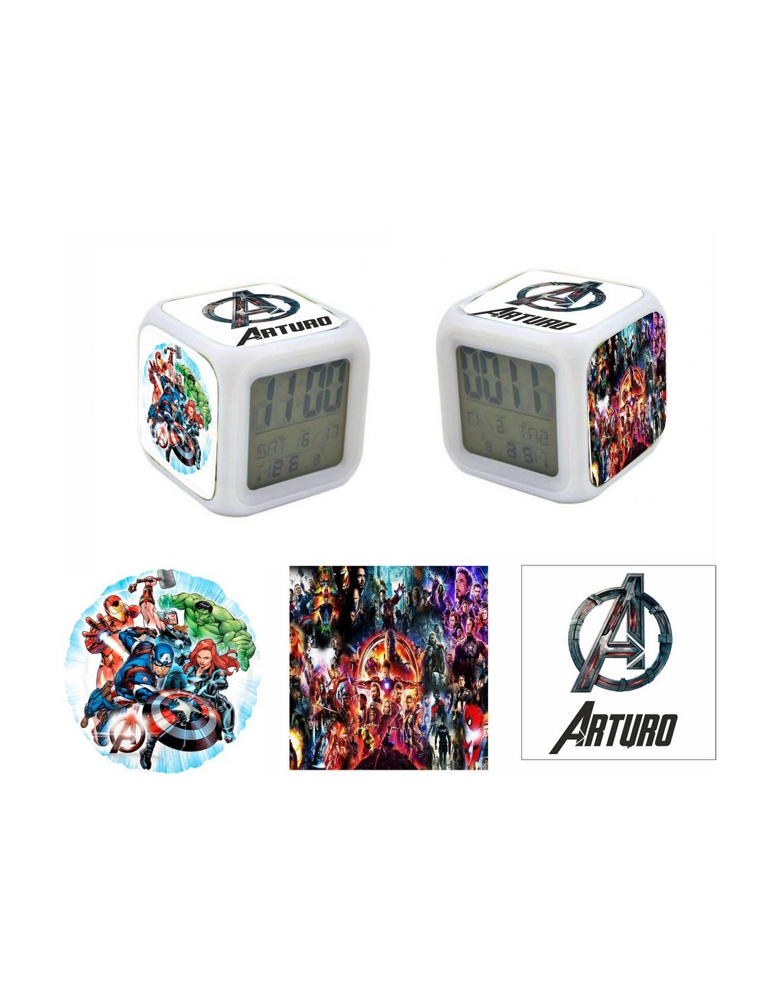 Reloj-despertador digital cúbico con luz interior en varios colores.