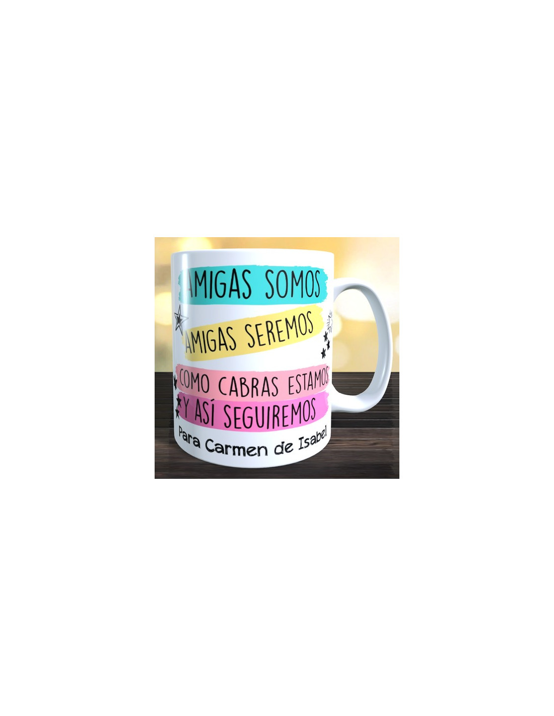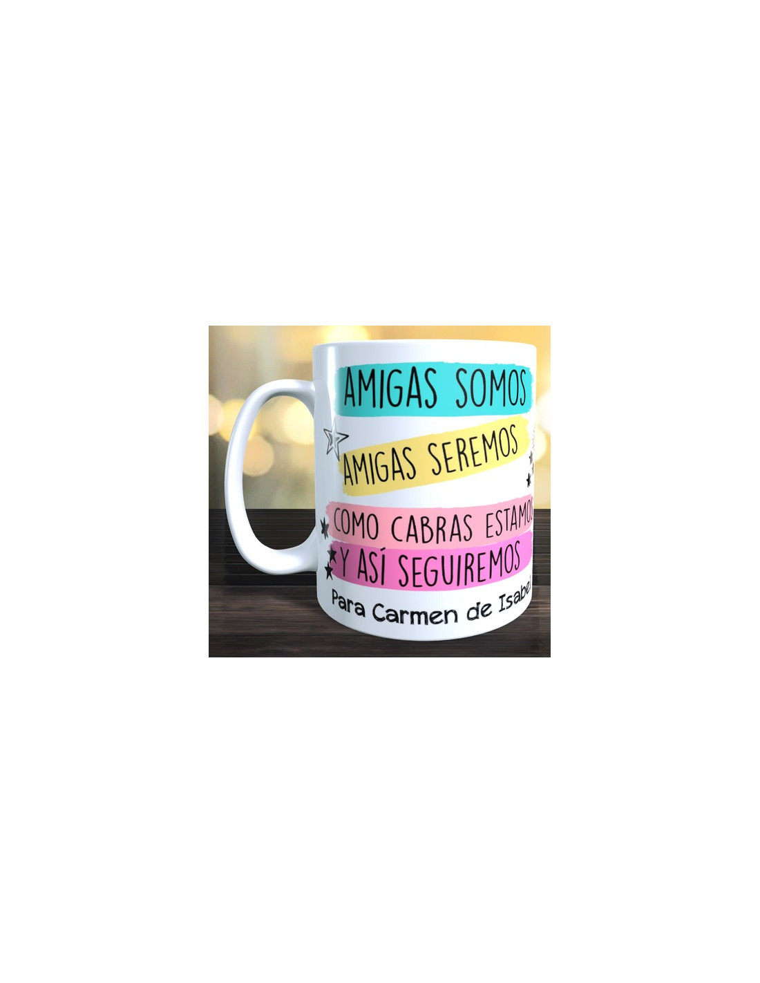 No olvide guardar su personalización para poder añadirla al carritoTaza amigas somos