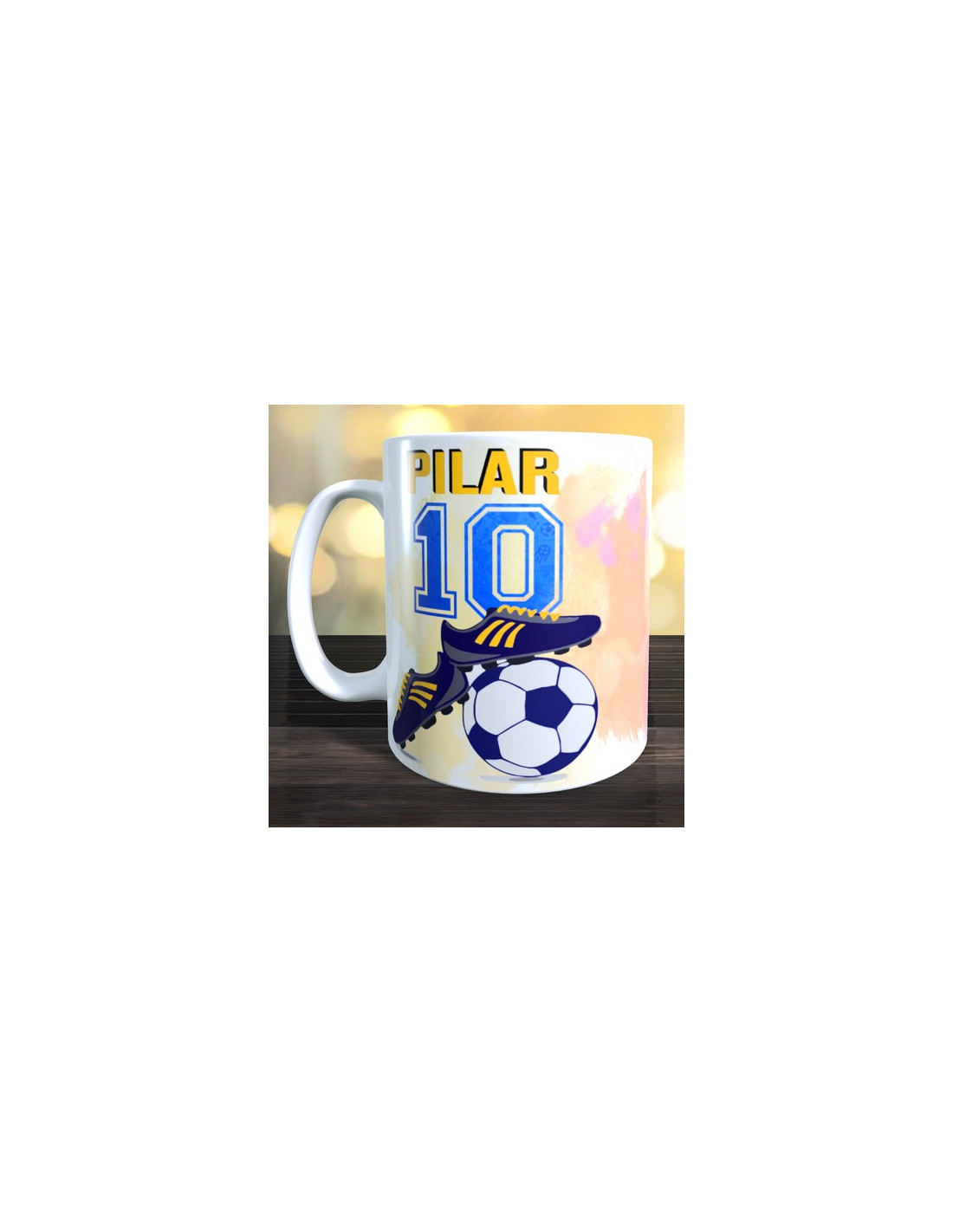 Taza futbol - numero y nombre fondo multicolor