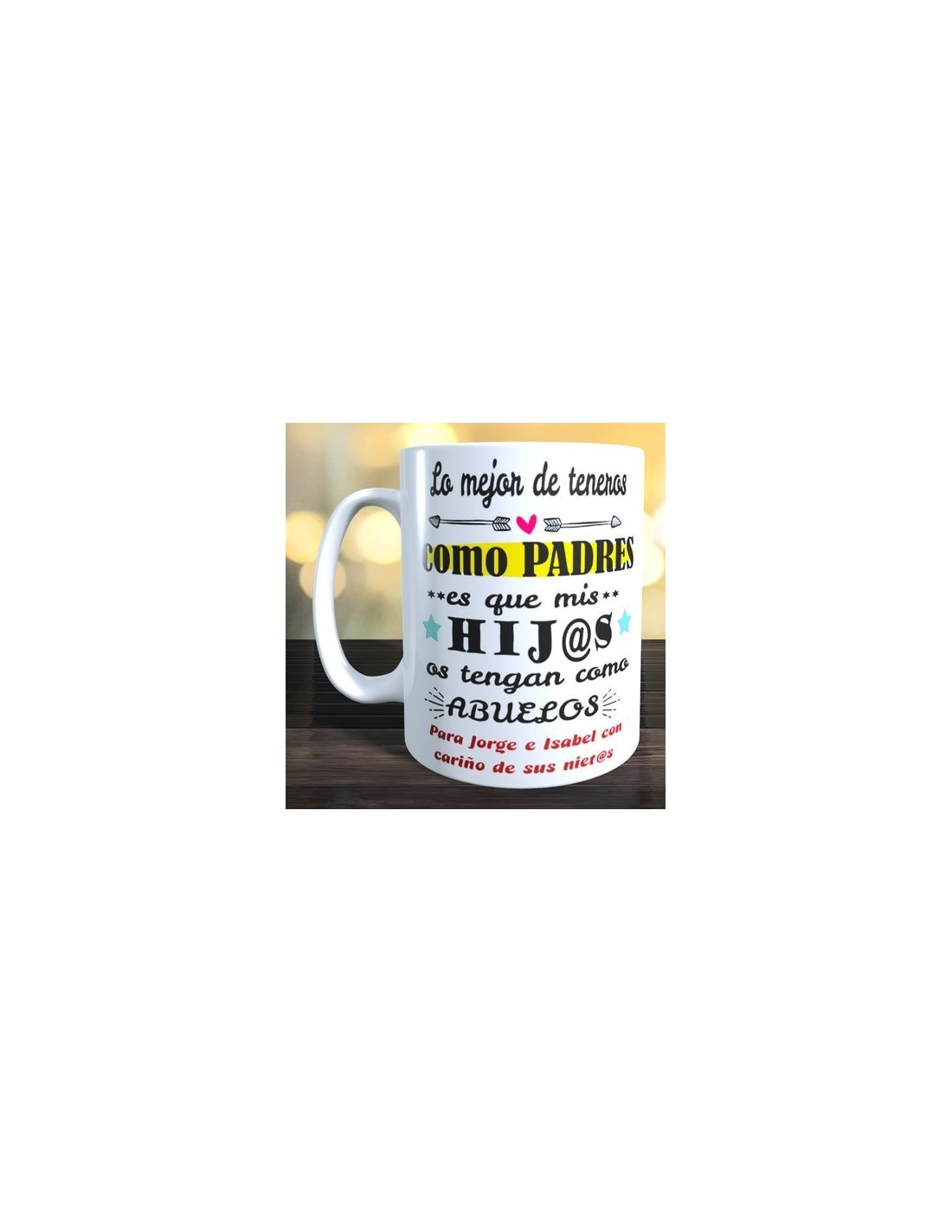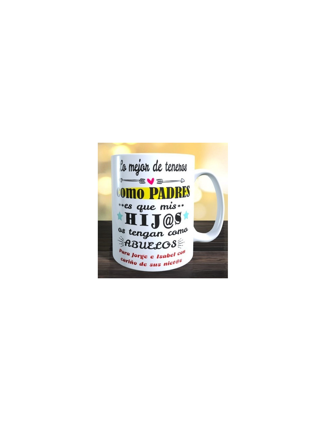 * Las tazas que no lleven el nombre implícito en el propio mensaje, lo llevarán en el frontal de la taza *
