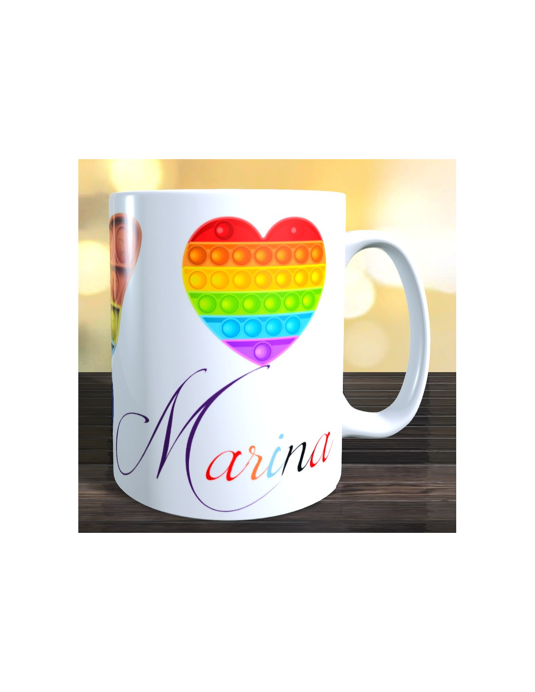 * Las tazas que no lleven el nombre implícito en el propio mensaje, lo llevarán en el frontal de la taza *