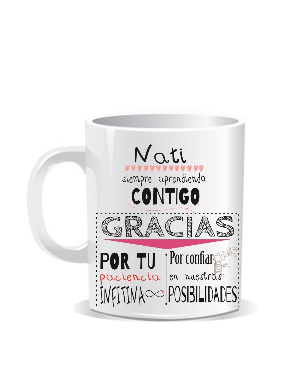 * Las tazas que no lleven el nombre implícito en el propio mensaje, lo llevarán en el frontal de la taza *