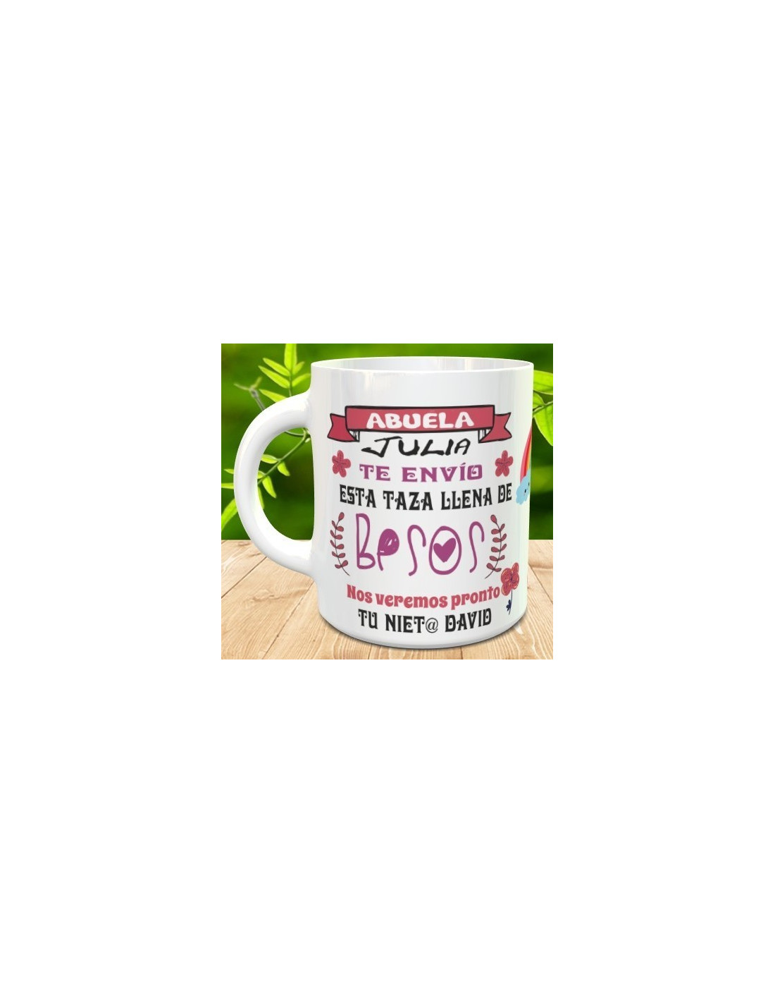 En el diseño hemos puesto ABUELA JULIA, puedes personalizarla como quieras: TIA PAULA, AMIGA SILVIA, MADRINA RAQUEL...