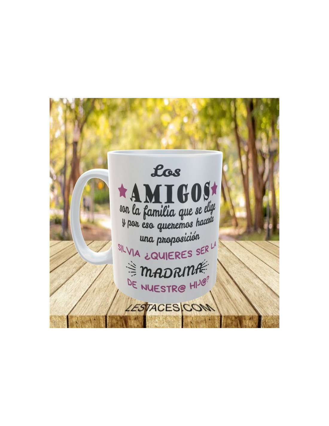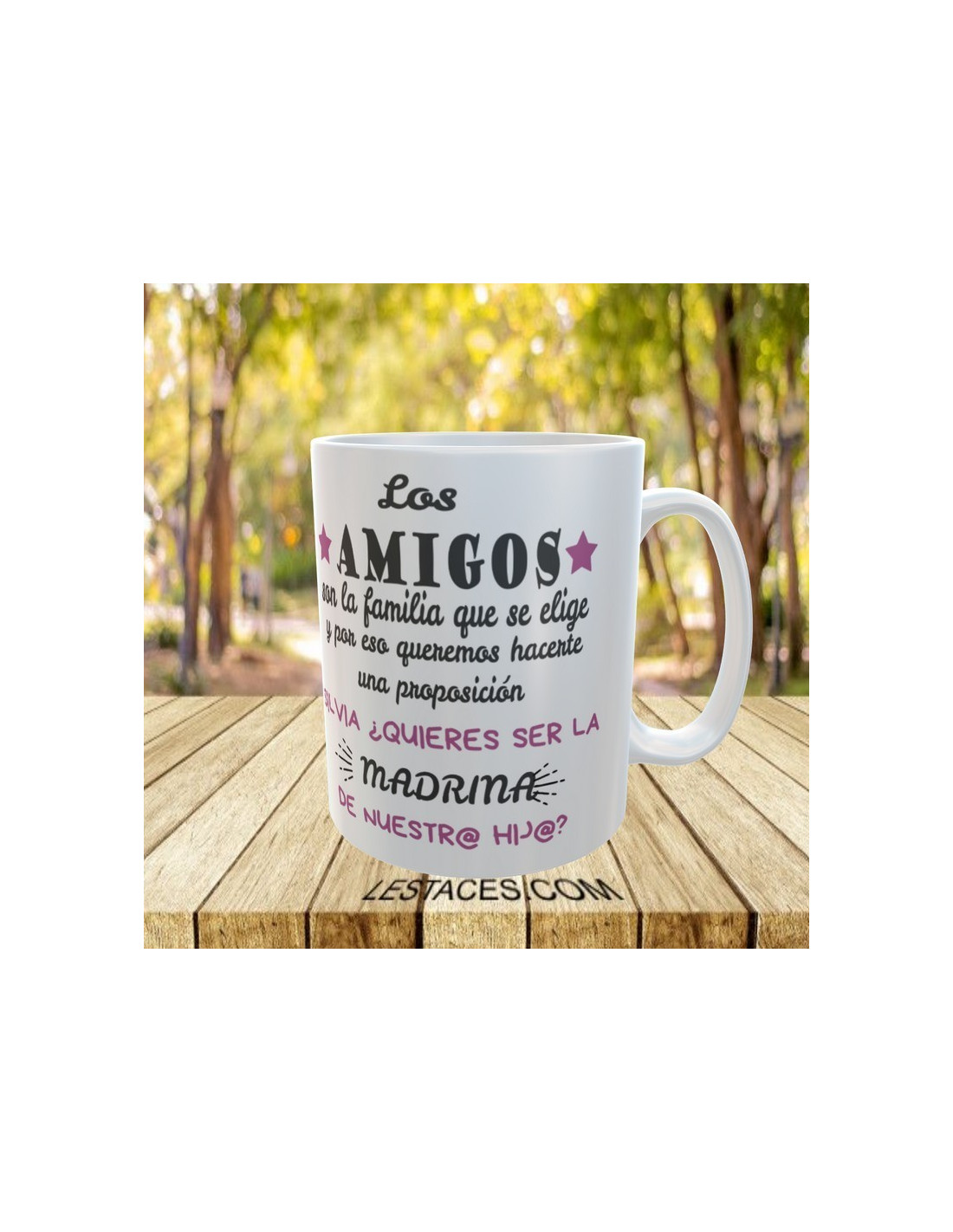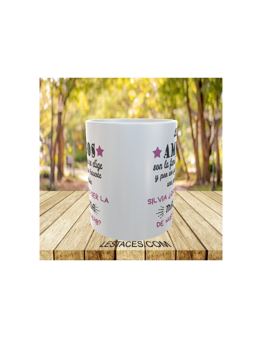 * Las tazas que no lleven el nombre implícito en el propio mensaje, lo llevarán en el frontal de la taza *