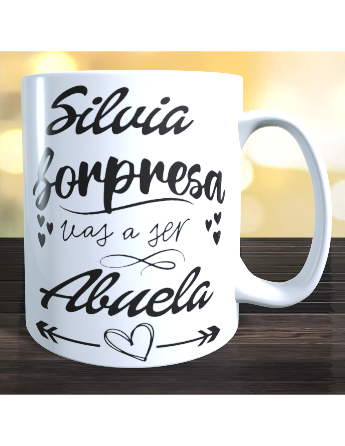 * Las tazas que no lleven el nombre implícito en el propio mensaje, lo llevarán en el frontal de la taza *